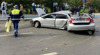 İstanbul Kartal'da refüjdeki ağaca çarpan otomobil ikiye bölündü