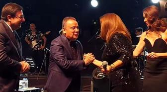 Ödül gecesinde olay anlar! Nükhet Duru, Belediye Başkanı Muhittin Böcek'e "Böcük Başkanım" diye seslendi
