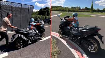 Kenan Sofuoğlu'nun 3 yaşındaki oğlu motosiklet sürdü! Sofuoğlu, o anları "560 cc sırada ne var?" notuyla paylaştı