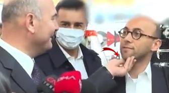 Bakan Soylu, yabancılarla ilgili iddiayı soran muhabirin çenesine dokunup böyle yanıt verdi: Canım benim