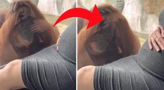 Hamile kadının karnını gören orangutanın verdiği tepki herkesi şaşırttı