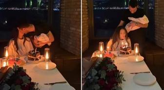 Murat Yıldırım minik kızı Miray'ı kucağına alarak eşinin doğum gününü kutladı