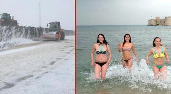 İki kare de Türkiye'de çekildi! Yurdun bir tarafı kara kışa teslimken, diğer yanı yazı yaşıyor