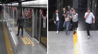 Metro istasyonunda bayrağa yapılan saldırı kamerada