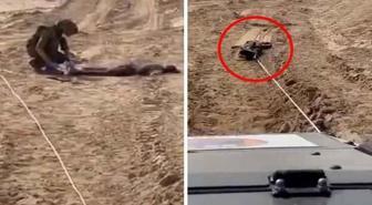 Görüntüler kan donduruyor! Öldürdükleri Filistinlinin cesedini araca bağlayıp böyle sürüklediler