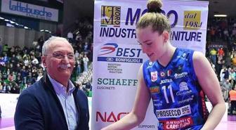 Başka hediye mi bulamadınız? Maçın oyuncusu seçilen Isabelle Haak'a matkap seti verildi