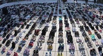 Seul'ün merkezine Filistin'de hayatını kaybedenlerin anısına 2 bin ayakkabı bırakıldı