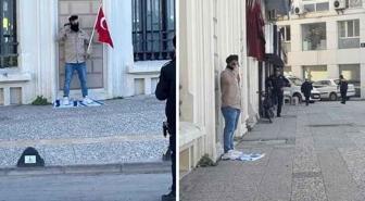 Bir garip intihar girişimi! Ayaklarının altına İsrail bayrağını, eline de Türk bayrağını alıp başına silah dayadı