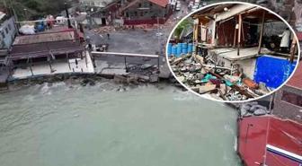 Dalgaların vurduğu Garipçe'de son durum havadan görüntülendi