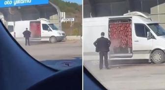 Oto yıkama istasyonunda sucuk yıkadılar