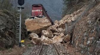 Kömür taşıyan tren, demir yoluna düşen kaya nedeniyle raydan çıktı