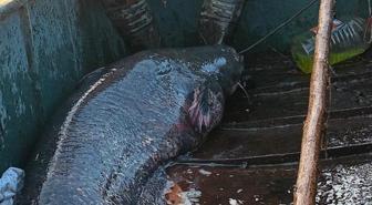 Dev yayın balığı oltaya takıldı! Zar zor karaya çıkarıp traktörle götürdüler