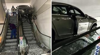 Otomobil camı kırıp alışveriş merkezine girdi, yürüyen merdivende asılı kaldı: 1'i ağır 3 yaralı