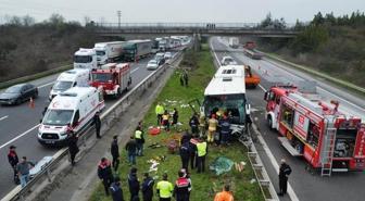 TEM'de yolcu otobüsü tıra çarptı: 17 yaralı