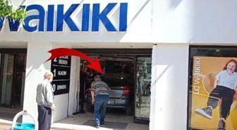 Fren yerine gaza basınca zincir giyim mağazasına daldı
