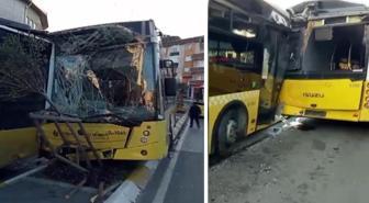 İstanbul'da facianın eşiğinden dönüldü! Gaz pedalı takılı kalan İETT otobüsü duraktaki otobüslere çarptı
