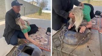 Görüntüler sosyal medyada kısa sürede yayıldı! Türbe bahçesinde yerdeki deliğe bakan kadın bayıldı