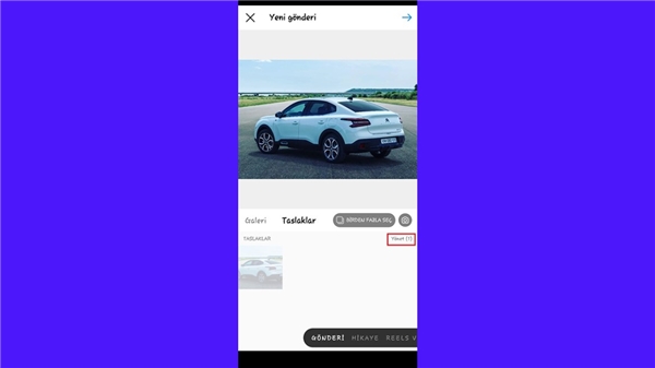 Adım 5: Daha önceden kaydetmiş olduğunuz bir taslak varsa, paylaşım ekranında Taslaklar sekmesi altında sizlere gösterilecektir.