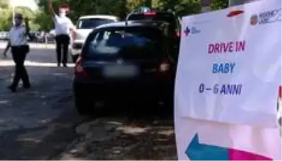 Öndeki arabanın camından yükselen çocuk ağlaması sesi, uzatılan bir şeker veya renkli resimle dindiriliyor; sürüntü örneği alınırken bu tür yöntemlere başvurmak işe yarıyor. Roma'daki bu "bebekler için araçta test" merkezinde bir sonraki arabaya sıra geliyor.