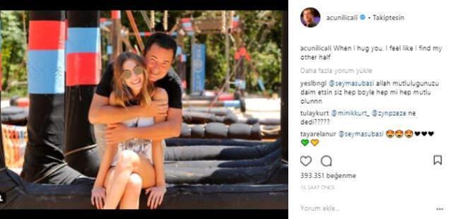 Acun paylaştığı fotoğrafın altına, "Sana sarıldığımda diğer yarımı bulduğumu hissediyorum." yazınca Şeyma Subaşı mest oldu. İkilinin fotoğrafları 400 bine yakın beğeni aldı.