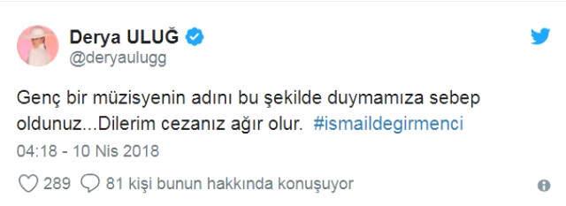 İsmail Değirmenci'nin ölümü sonrası birçok ünlü isim sosyal medya hesabından tepkisini dile getirdi.