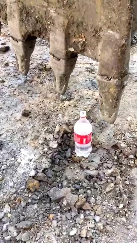 O anlar ise oradaki vatandaş tarafından kaydedildi. Görüntülerde iş makinesi operatörünün başla talimatı ile kola şişesi kapağına dokunuşlar yapmasının sonucunda kapağın açıldığı görülüyor.