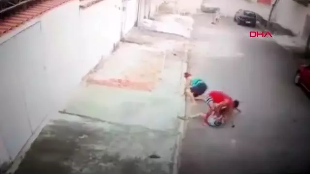 Brezilya'da başıboş bırakılan bir pitbull, sokakta bir çocuğa saldırdı. Olayı gören genç bir adam ise çocuğu köpekten güçlükle kurtarıp bir aracın tavanına bıraktı. Kendisi de aracın üstüne çıkan genç adam, saldırıdan bu şekilde kurtulmayı başardı. Yaşanan o anlar sokaktaki bir güvenlik kamerasınca kaydedildi.