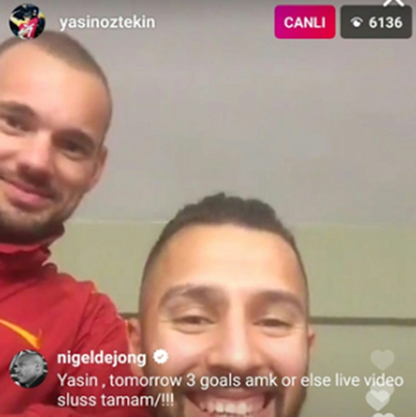 Galatasaray'ın yıldız oyuncuları Wesley Sneijder ile Yasin Öztekin, 18. haftada oynanacak olan Akhisar Belediyespor maçı öncesi sosyal medyadan canlı yayın yaptı.