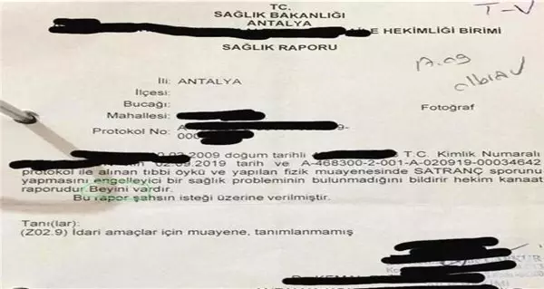 Son olarak satranç sporcularına verilen sağlık raporlarında doktorların açıklama kısmına yazdıkları ifadeler gündeme oturdu. Satranç sporcularından sağlık raporu istenmesi skandalı bir yana; doktorların açıklama bölümüne "Beyni vardır" ve "Biliyorsa oynasın, bilmiyorsa oynamasın" gibi ifadeler kullanmaları adeta sporcularla ve federasyonla dalga geçiyormuş izlenimi yarattı.