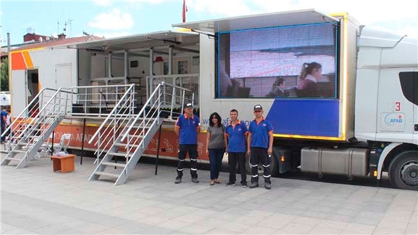 Mobil merkezler ile Türkiye'nin dört bir yanında 'afet bilinci eğitim turu' gerçekleştiriliyor. AFAD ekipleri bu merkezler sayesinde illere ve en uzak ilçelere giderek vatandaşları deprem deneyimi ve uygulamalı eğitimle buluşturuyor.
