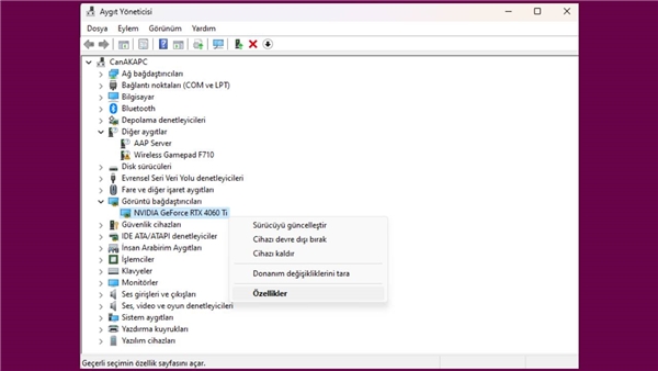 Aygıt Yöneticisi ile ekran kartı sıfırlama-resetleme