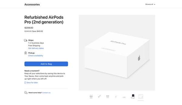 Teknolojik ürünlerde artan fiyatlar nedeniyle son yıllarda yenilenmiş cihazlar daha cazip bir hale gelmeye başladı. Apple da bu alanda faaliyet gösteren şirketlerden birisi. Son olarak ABD'li firma bir ülkede daha yenilenmiş AirPods Pro 2 satmaya başladı.