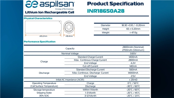Üretilen INR18650A28 kodlu kimyası ve bileşimi nikelce zengin lityum-nikel-manganez-kobalt oksit olan 18650 pillerin kapasitesi 2800 mAh. Voltajı da 3.65V. Yapılan testlerin sonucunda ise standartların üzerinde performans sergilediği paylaşıldı. Bu nedenle hem yurt içi hem de yurtdışından yoğun talep gördüğü söyleniyor.