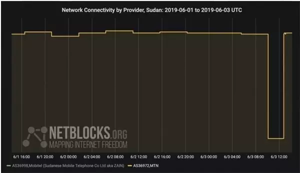 Netblocks'a göre, Haziran 2018'de hükümet ülkedeki interneti günler boyunca "daraltmaya" başladı. Teknik olarak internet servisleri çevrim içi olsa da büyük ağların kapasiteleri azaltıldı ve ülkede yaşayanların büyük bir çoğunluğu internete erişemedi. İddialara göre, internet erişiminin kesilmesi ülkedeki demokrasi isteyen 100 kişinin öldürülmesi tarihleriyle de kesişiyor.