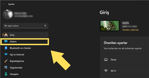 Bilgisayarınızın "Ayarlar" bölümüne girin. Bunu klavyenizden "Windows+ı" kombinasyonunu kullanarak hızlıca açabilirsiniz. Ayarlara girdikten sonra soldaki kenar çubuğunda yer alan "Sistem" kısmına girin.