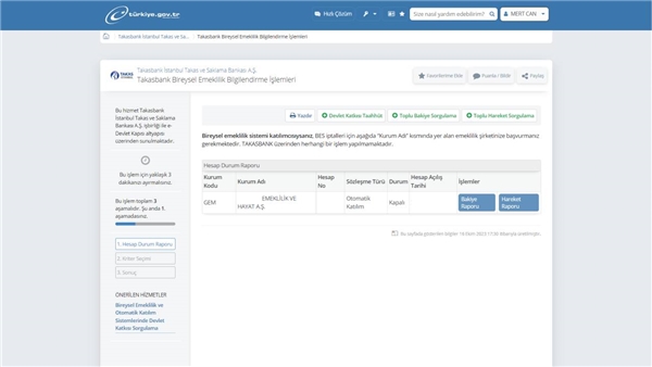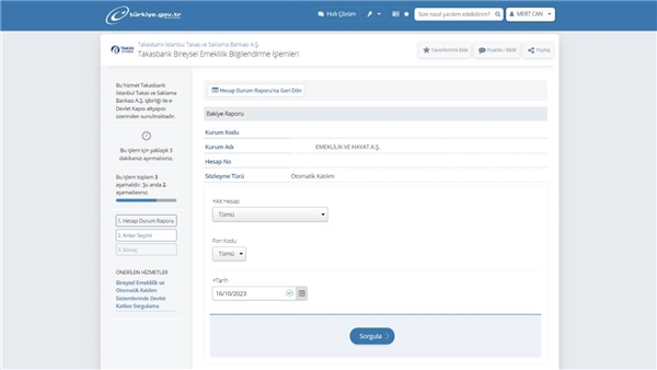 Karşınıza çıkan Takasbank ekranında, BES hesabınızı kontrol etmek için gereken bilgilere ulaşabilirsiniz. Burada biriken paranızı görüntüleyebilirsiniz.