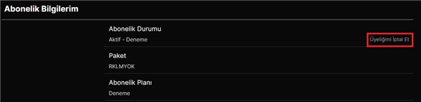 3 – Abonelik Bilgilerim kısmında abonelik durumunun sağında bulunan Üyeliğimi İptal Et bağlantısına gidin.