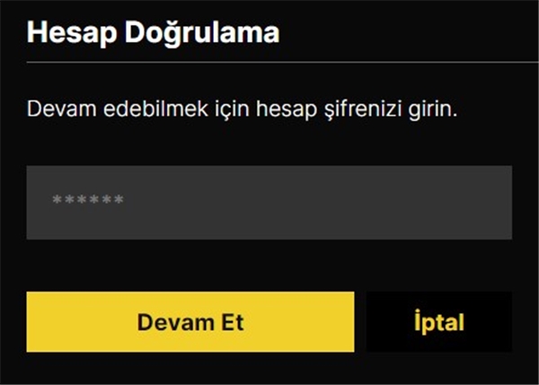 4 – Hesap silme talebinizi onaylamak için şifrenizi girdikten sonra "Profilinizi sildiğinizde profile ait tüm listeler ve izleme geçmişi de silinecektir. Devam etmek ve profili silmek istediğinize emin misiniz?" uyarısı karşınıza çıkacak.