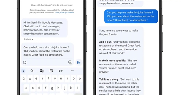 Google Mesajlar, Gemini entegrasyonu sayesinde mesajları taslak olarak hazırlayabilecek, fikirler üretebilecek, etkinlikleri planlayabilecek veya sadece eğlenceli bir sohbet edebileceksiniz.