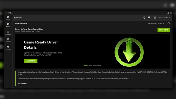 Yeni sürücüyü indirebilmek için NVIDIA uygulamasına giriş yapmalısınız. Akabinde sol menü üzerinden Sürücüler kısmına girdikten sonra yeni sürümü indirmeye başlayabilir ve son olarak kurulumu yapabilirsiniz.