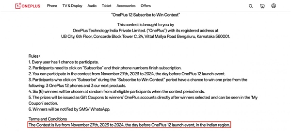 OnePlus 12'nin global tanıtım tarihi bugüne dek ortaya çıkmadı. Ancak bazı kaynaklar OnePlus'ın telefon için açtığı Avrupa, ABD ve Hindistan'a yönelik destek sayfalarında önemli bir detayı fark etti. Zira bu gibi web sitelerinde cihazın globaldeki pazarlama kampanyasının 27 Kasım ile 23 Ocak arasında yapılacağını gösteren ibareler var. Hatta Hindistan sayfasında bunun yanı sıra kampanyanın bitiş tarihini "OnePlus 12 lansman etkinliğinden önceki gün" olarak tanımlayan ifadeler de var.