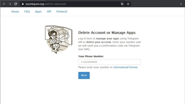 Hesabınızı devre dışı bırakmanın bir başka yolu da, Telegram hesap silme linki kullanmaktır. Bu sayede herhangi bir süre beklemenize gerek kalmaz. Hesabınız o andan itibaren silinir. Bunun için: