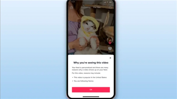 Şirket yaptığı paylaşım ile öneri sisteminin teknik modellerden güç aldığını ve bu özelliğin teknik ayrıntılarını daha kolay anlaşılır hale getirmeyi amaçladıklarını ifade ediyor. Paylaşılan görselde ise gönderinin önerilme nedeni olarak ' Bu video ABD'de popüler' ve 'Hanna'yı takip ettiğin için' ifadeleri gösteriliyor.