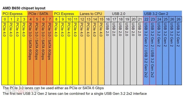 Kısa bir özet geçecek olursak, B650 serisi anakartlar toplamda sekiz adet kullanılabilir PCIe 4.0 hattına ve dört adet PCIe 3.0 veya SATA (6 Gbps) bağlantısına sahip olacak. X670 ve X670E serisi anakartlar ise 12 adet PCIe 4.0 hattına ve 8 adede kadar da PCIe 3.0 veya SATA (6 Gbps) bağlantısına sahip olacak.