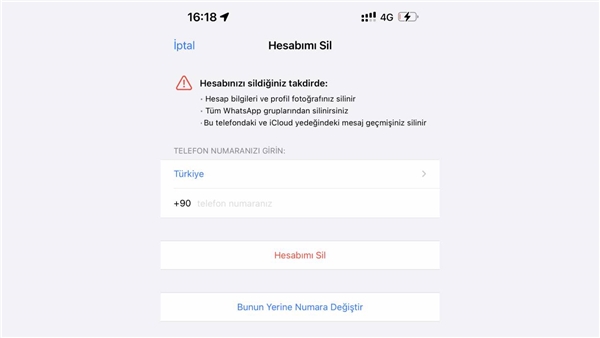 WhatsApp hesap silme işlemini tamamlayabilmeniz için karşınıza çıkan ekrana telefon numaranızı girmeniz istenecek. Telefon numarasını girdikten sonra "Hesabımı Sil" butonu tıklayarak WhatsApp'a veda edebilirsiniz.