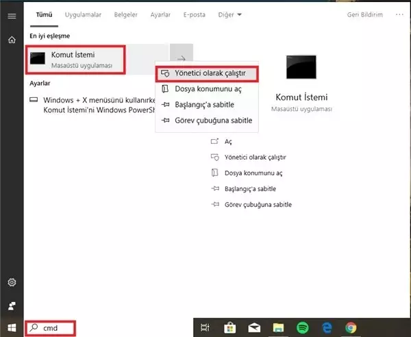 Komut İstemi (CMD) ile aranız iyiyse bu yolu tercih etmenizde fayda var zira CMD ile parola kaldırmak tek bir komut ile halledilebilerek zamandan kazandıran bir işlem. Komut İstemi'ni açmak için arma yerine "cmd" veya "komut istemi" yazmanız ve çıkan sonuca sağ tıklayarak "Yönetici Olarak Çalıştır" seçeneğini seçmeniz gerekiyor.