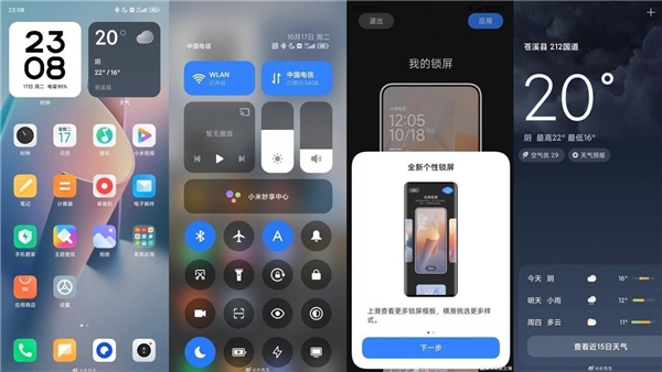 Xiaomi HyperOS; yeni saat stilleri, yazı tipleri, duvar kağıtları ve widget'larla ile kilit ekranında daha fazla özelleştirme sunacak. Kontrol merkezi ise bir önceki sürüm MIUI 14'e kıyasla daha temiz ve daha modern bir tasarıma sahip olacak. Uygulama simgeleri ise benzer, ancak genel tutarlılık artmış gibi duruyor.